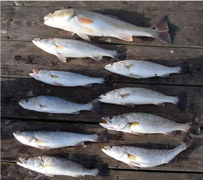 Sweet stringer. I've seen trout chasing bait in the green lights Wed and Thurs nights. Last year it was mid March before I saw the fish in the lights. It's been so warm down here...